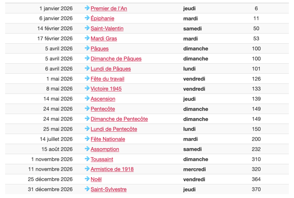 CALENDRIER 2026 Jours fériés Alsace Moselle France 2026 Vendredi 3 Avril 2026 – Vendredi Saint (uniquement en Alsace/Moselle) Vendredi 26 décembre 2026 – Saint-Étienne (uniquement en Alsace/Moselle)